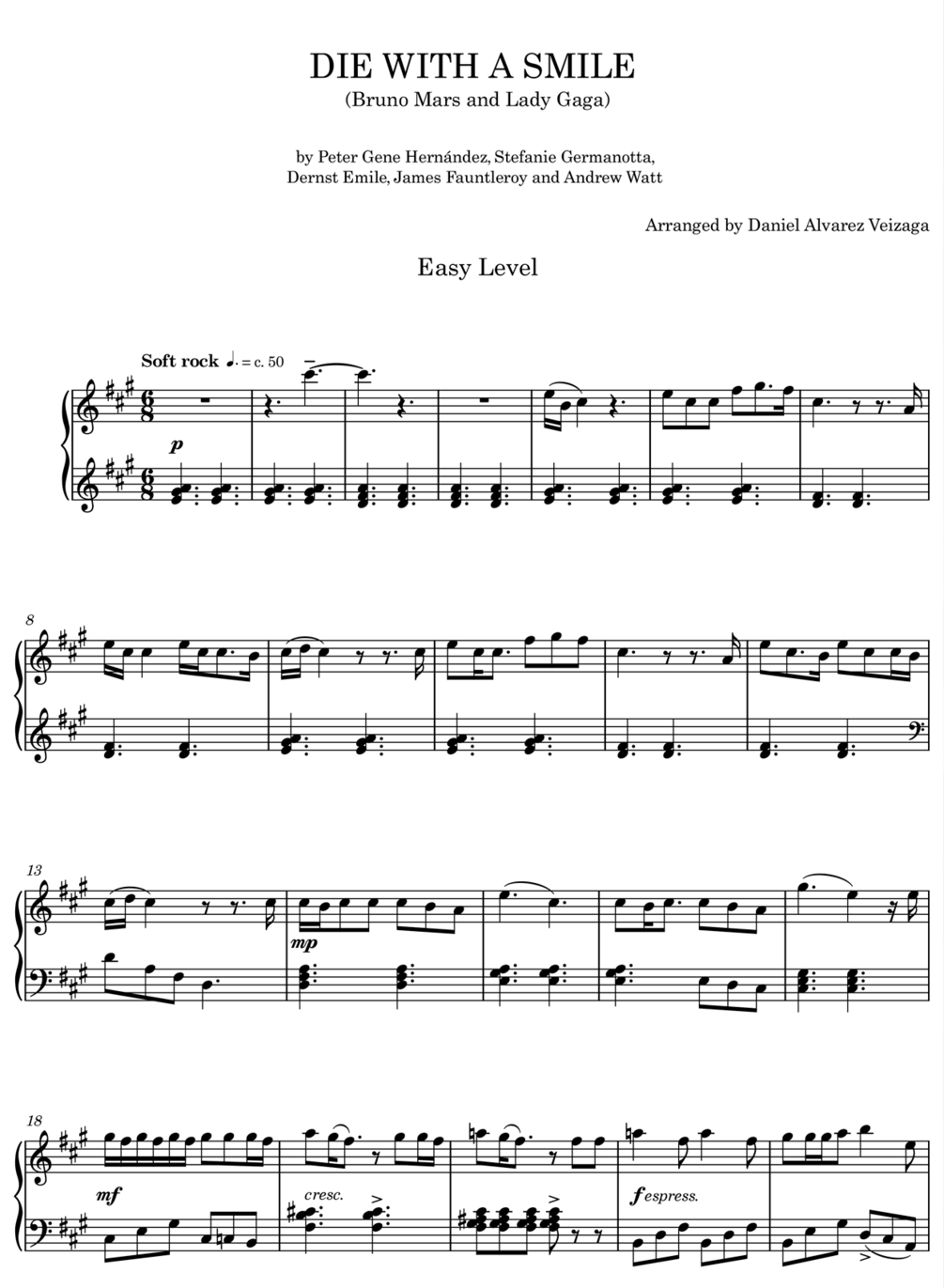DIE WITH A SMILE - Piano score (EASY LEVEL)